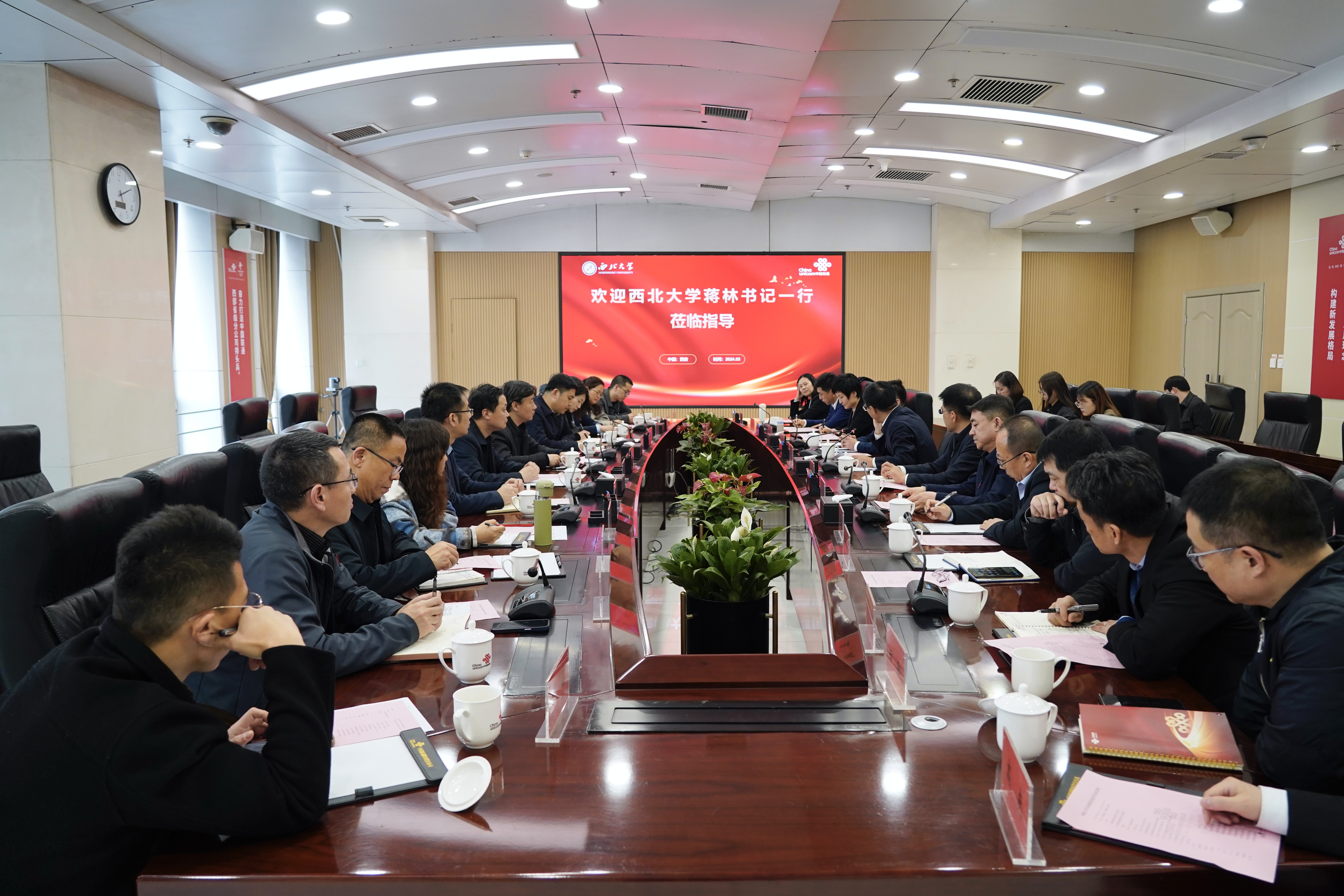 蒋林对陕西联通长期以来关心支持学校事业表示感谢。他指出,联通作为大型央企,积极拓展数字化、智能化新赛道,产业价值和社会贡献度不断提升,为国家通信服务、网络安全等方面提供了坚实支撑,彰显了联通“国家队、主力军、排头兵”的使命担当。他表示,新时期学校建设世界一流大学迫切需要陕西联通在基础网络、数字化应用等方面的高精技术合作和支持,希望与陕西联通在人才培养、科研合作、服务社会等方面打造更广领域、更高层次的合作。