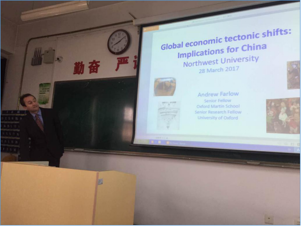 2017年3月28日上午,英国牛津大学Martin学院的高级研究员Andrew Farlow访问新葡的京官网,并在长安校区做“全球经济结构转型:对中国的启示”的专题报告。新葡的京集团35222vip副院长师博副教授主持了报告会。
