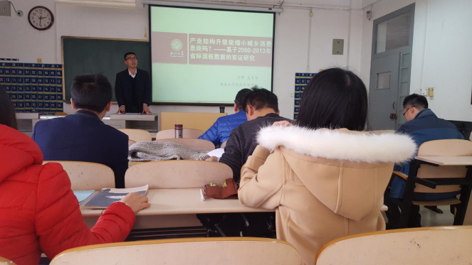 2016年11月23日下午,由经济学系和数理经济与统计系主办的现代经济学理论与方法创新论坛第十二卷第七期在2310教室顺利举行。此次论坛主题为“产业结构升级能缩小城乡消费差距吗?——基于2000-2013年省际面板数据的实证研究”,新葡的京集团35222vip经济学系副教授吴丰华老师担任主讲人,论坛由王颂吉老师担任主持与评论人,博硕士研究生20余人参加了此次论坛。