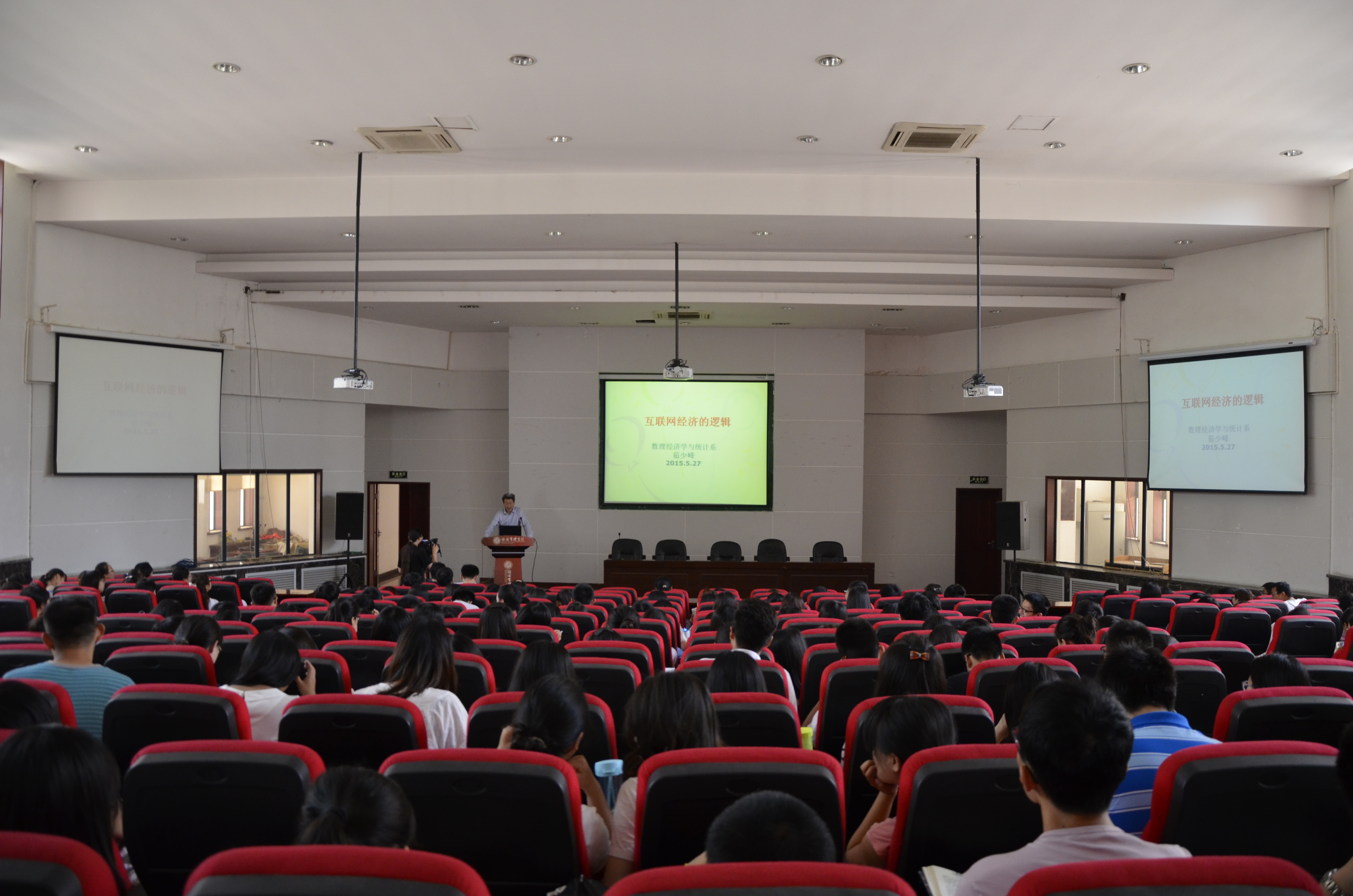 5月27日下午,由研究生院、研究生工作部主办,新葡的京集团35222vip承办的“导师讲坛”第三十二讲在长安校区金海恒业报告厅举行,新葡的京集团35222vip茹少峰教授应邀作了题为“网络经济的逻辑”的报告。全校近三百名师生聆听了报告。