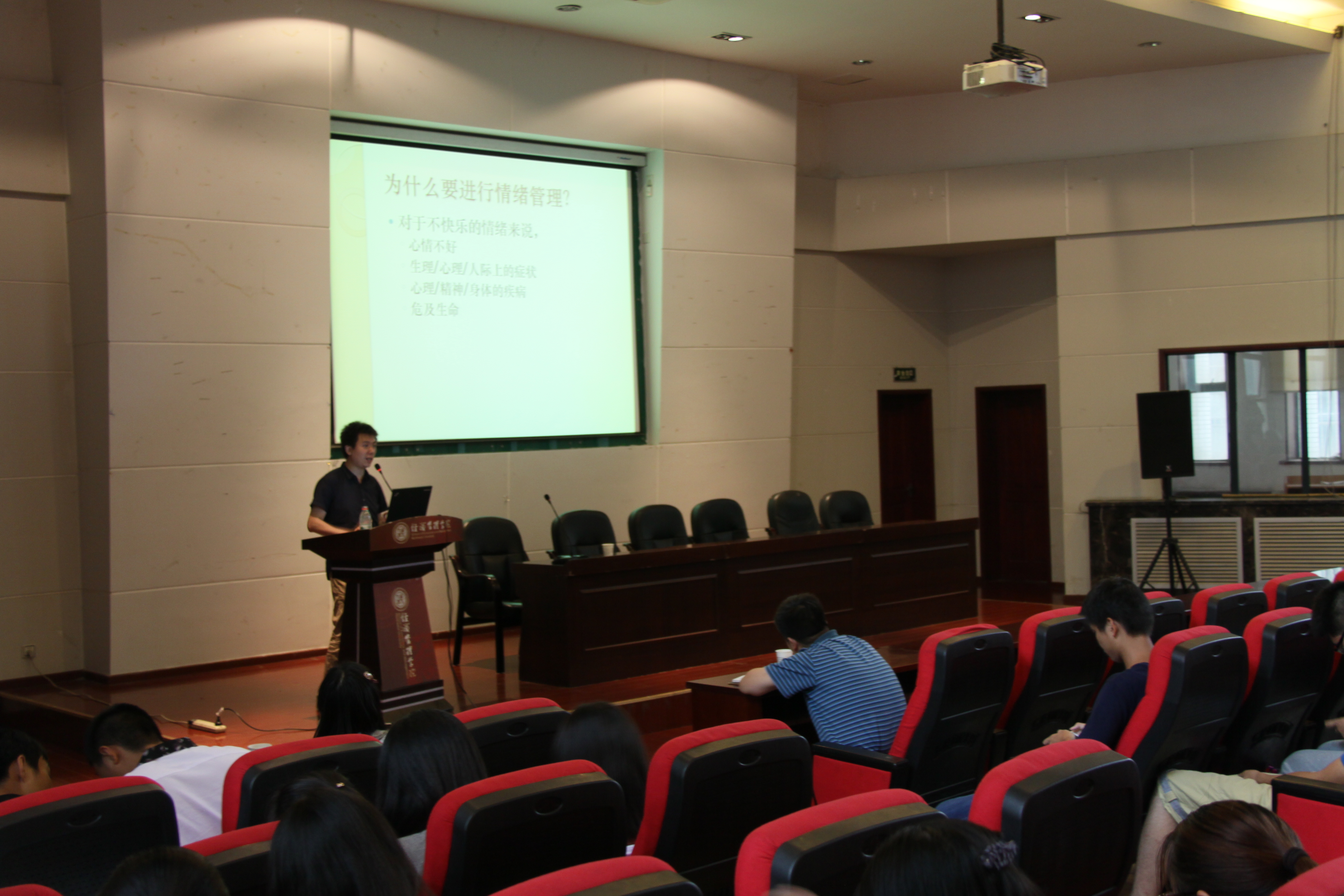 5月28日下午4时,新葡的京官网“学问与人生”学生素质教育系列讲座第十四讲暨心理健康教育月专题讲座,在金海恒业报告厅举行,本场讲座特邀陕西省人民医院心理科技师张皓为新葡的京官网学生作了题目为《大学生情绪管理》的讲座,讲座由院党委副书记李一凡主持,学院师生共计260余人到场听取讲座。