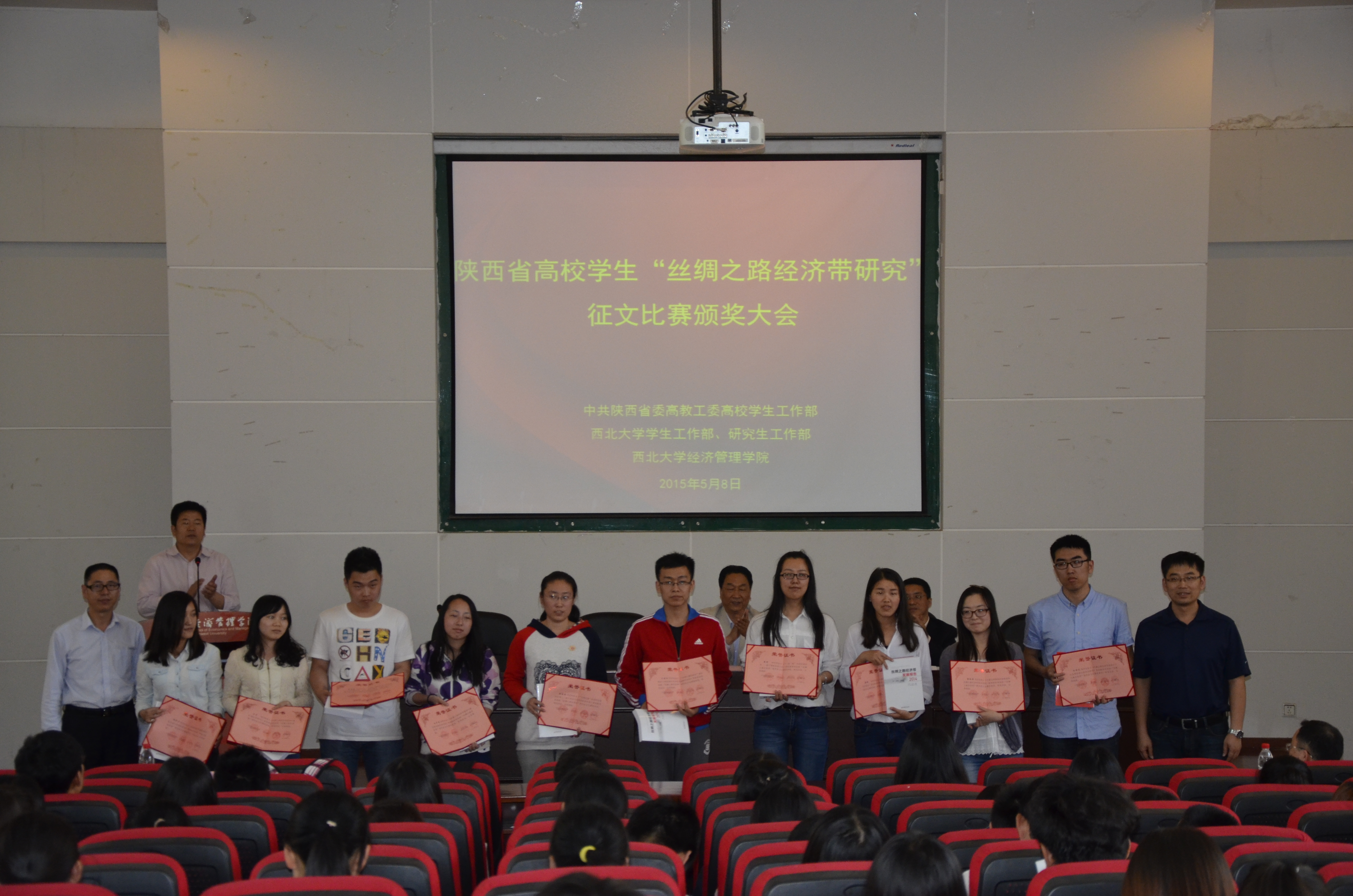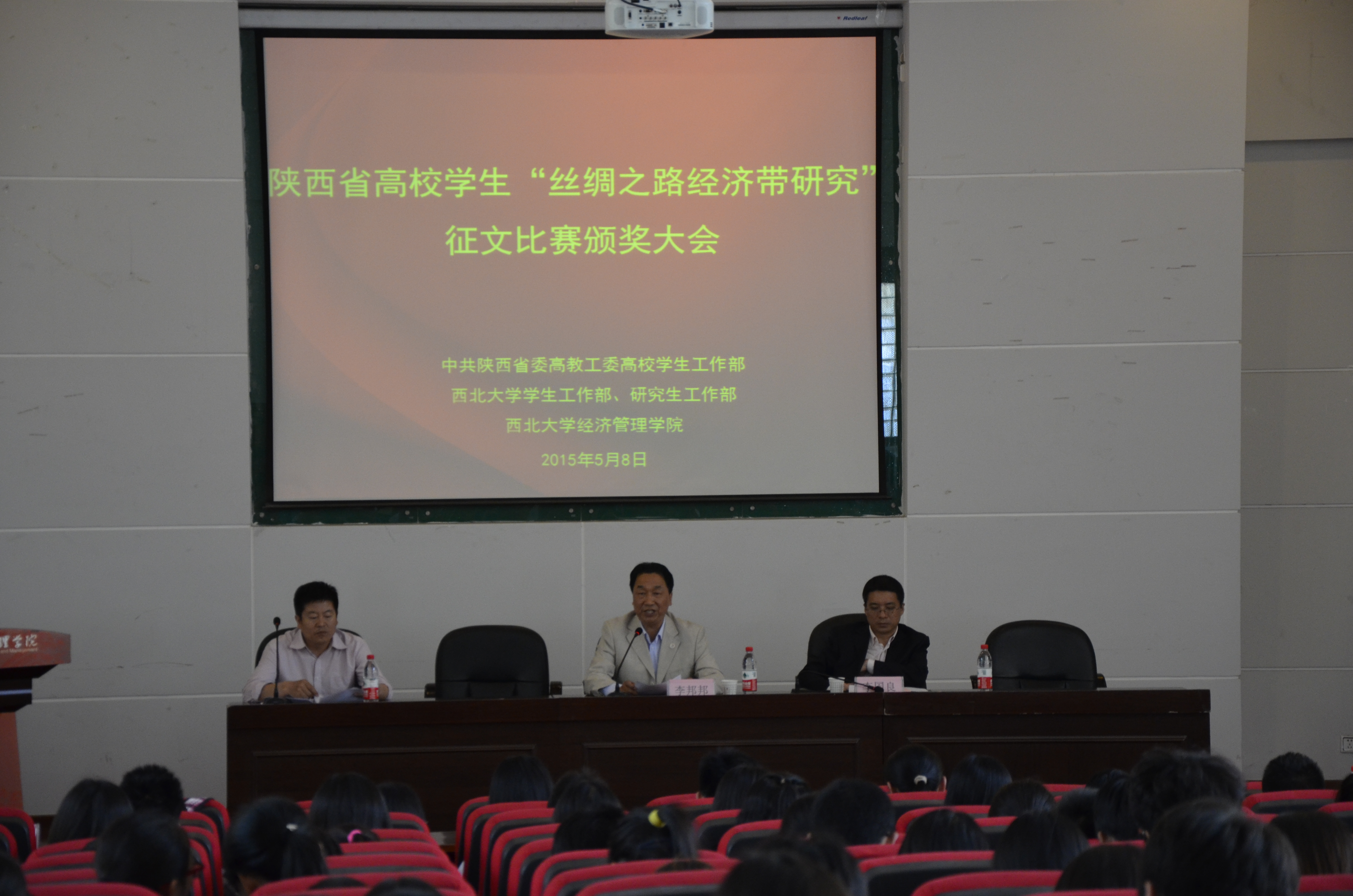 5月8日下午,由中共陕西省委高教工委高校学生工作部、新葡的京集团35222vip学生工作部、新葡的京集团35222vip研究生工作部、新葡的京集团35222vip主办,新葡的京集团35222vip具体承办的全省高校学生“丝绸之路经济带研究”征文比赛颁奖大会在金海报告厅隆重举行,校党委常委、纪委书记李邦邦出席大会,校学生工作部、研究生院、新葡的京集团35222vip相关负责人及师生代表共计250余人参加了大会。