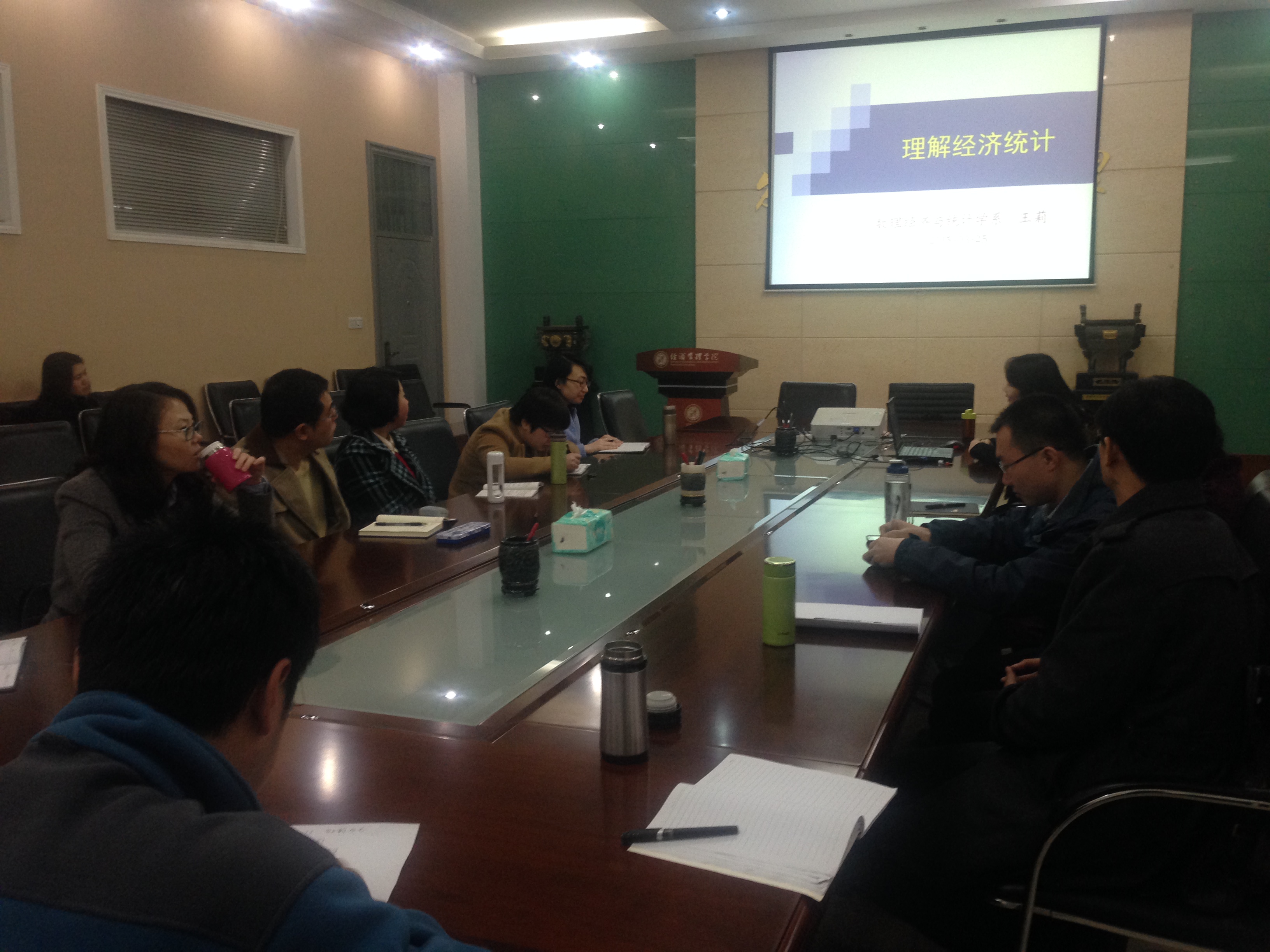 王莉副教授从统计学的历史发展逻辑、国民经济核算体系的框架性内容(SNA)核算体系、宏观经济测算前沿以及大数据对统计研究的冲击等方面系统阐释了经济统计的产生、发展以及面临挑战和热点问题。最后王莉副教授还就经济统计常见误区与参加讨论的老师进行交流。