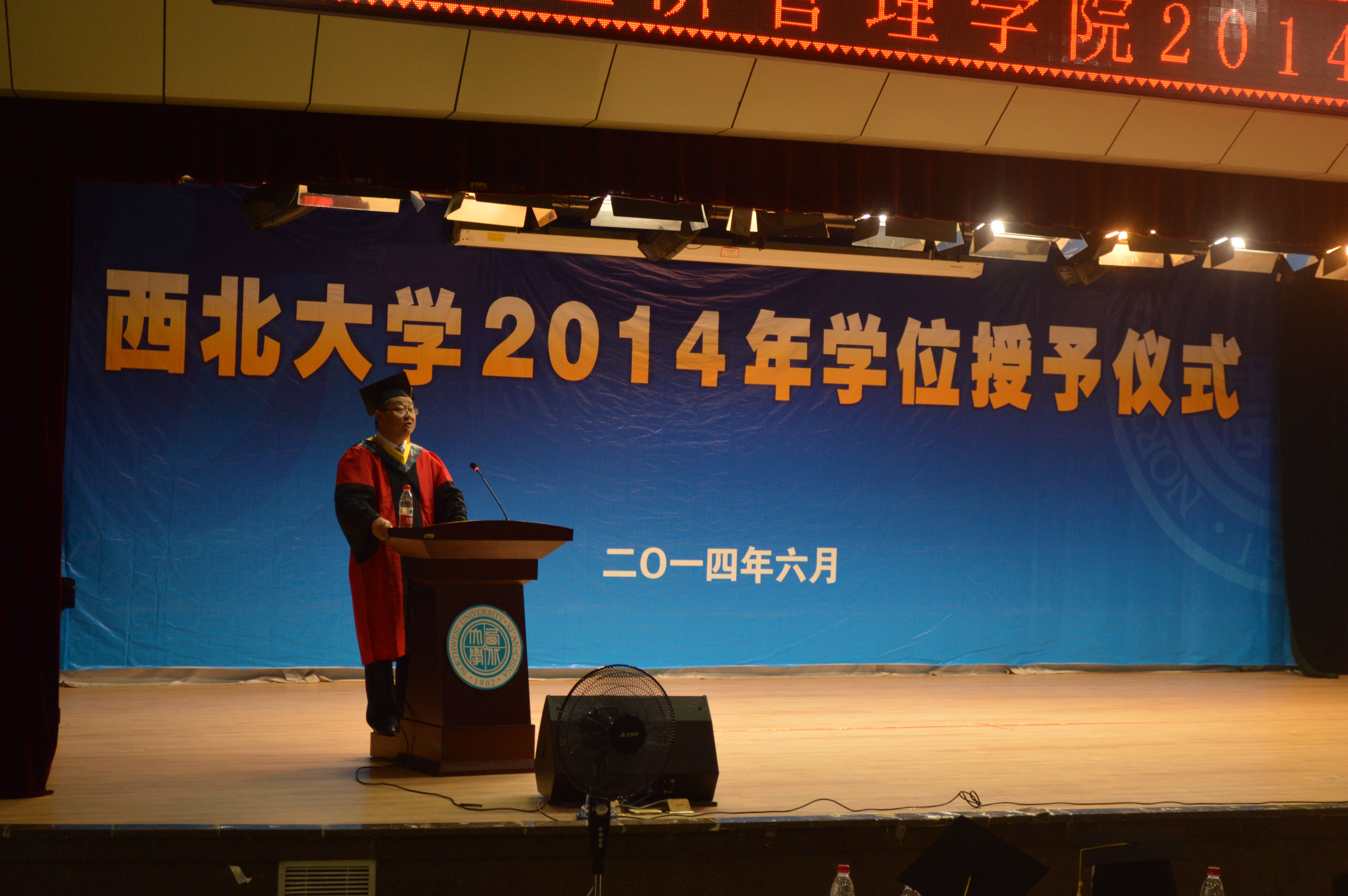 典礼上,新葡的京集团35222vip副院长吴振磊副教授宣读了2014年毕业生人数及学位授予人数, 院长任保平教授为今年毕业的博士毕业生、硕士毕业生授予了学位。副院长惠宁教授、经济学系主任何爱平教授、工商管理系主任安立仁教授、会计学系主任张晓明教授、数理经济与统计学主任茹少锋教授、信息管理与信息系统系主任齐捧虎教授分别为各系本科毕业生授予了学位。