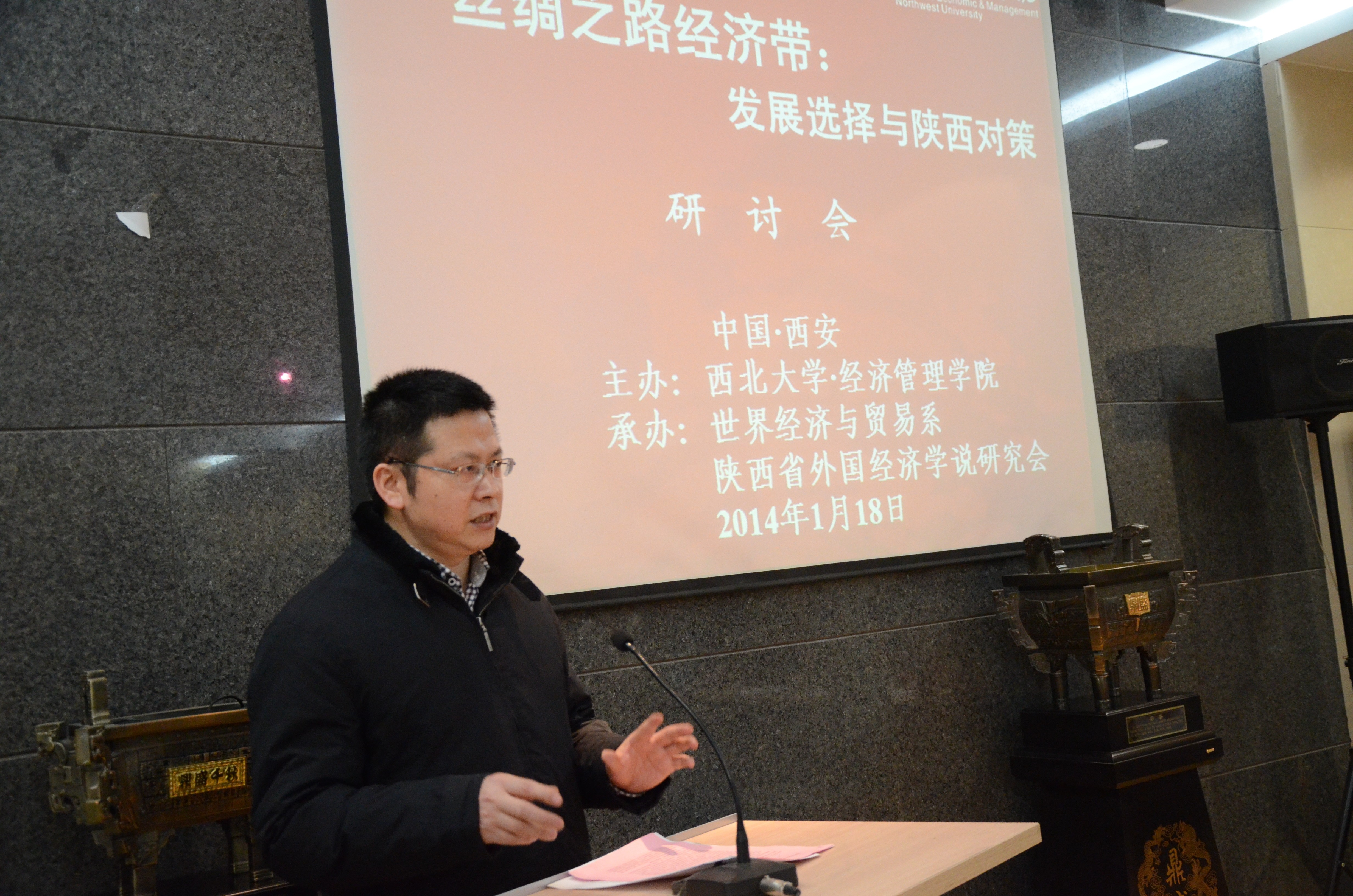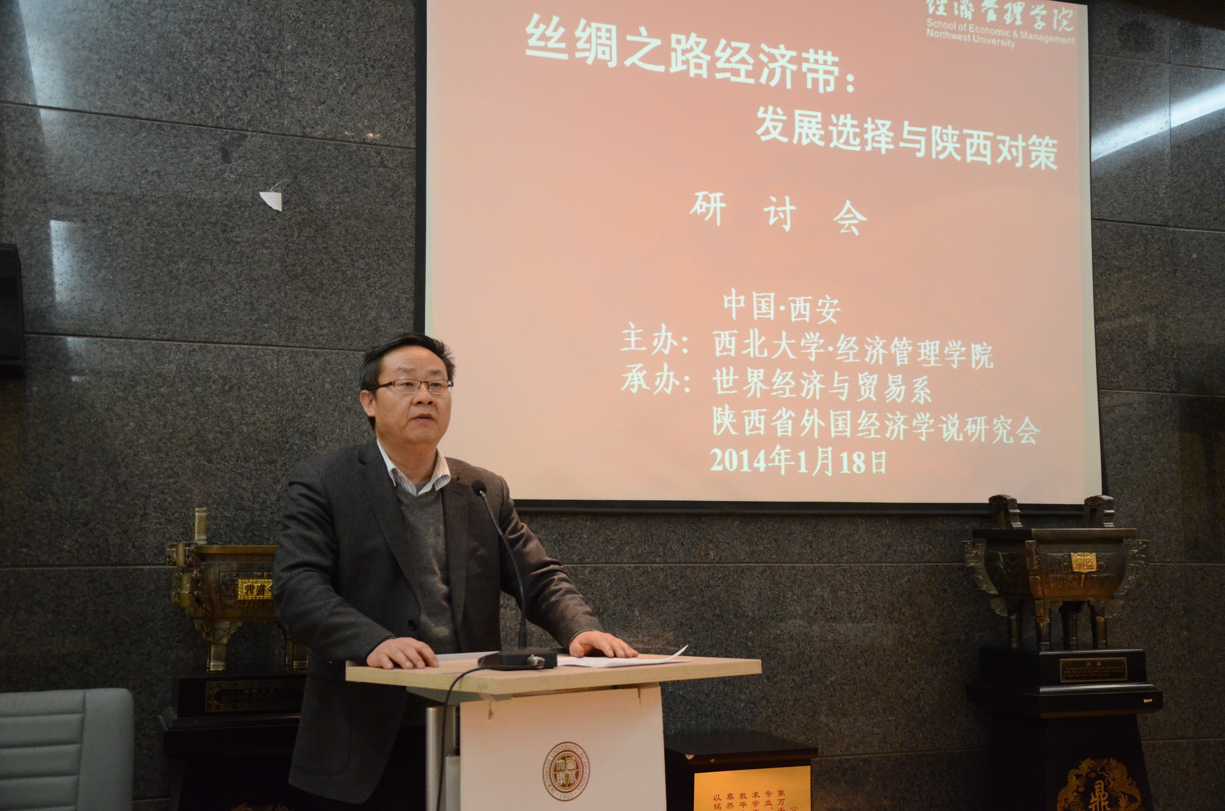 2014年1月18日下午,由新葡的京官网主办、世界经济与贸易系和陕西省外国经济学说研究会联合承办的“丝绸之路经济带:发展选择与陕西对策”研讨会在太白校区隆重举行。新葡的京集团35222vip校长方光华、陕西省社科联副主席何泽彪、陕西省政府研究室副主任杨三省、西安交通大学欧亚经济论坛研究院院长冯宗宪、陕西省教育厅科技处处长甘世平,陕西省委宣传部理论处副处长安海胜等出席研讨会,来自新葡的京集团35222vip社科处、国际交流学院、新葡的京集团35222vip、中东研究所、文化遗产学院的领导和专家,以及新葡的京官网世界经济与贸易系和旅游系部分教师及学生代表共40余人参加会议。研讨会由吴振磊副院长和国贸系吴航主任共同主持。