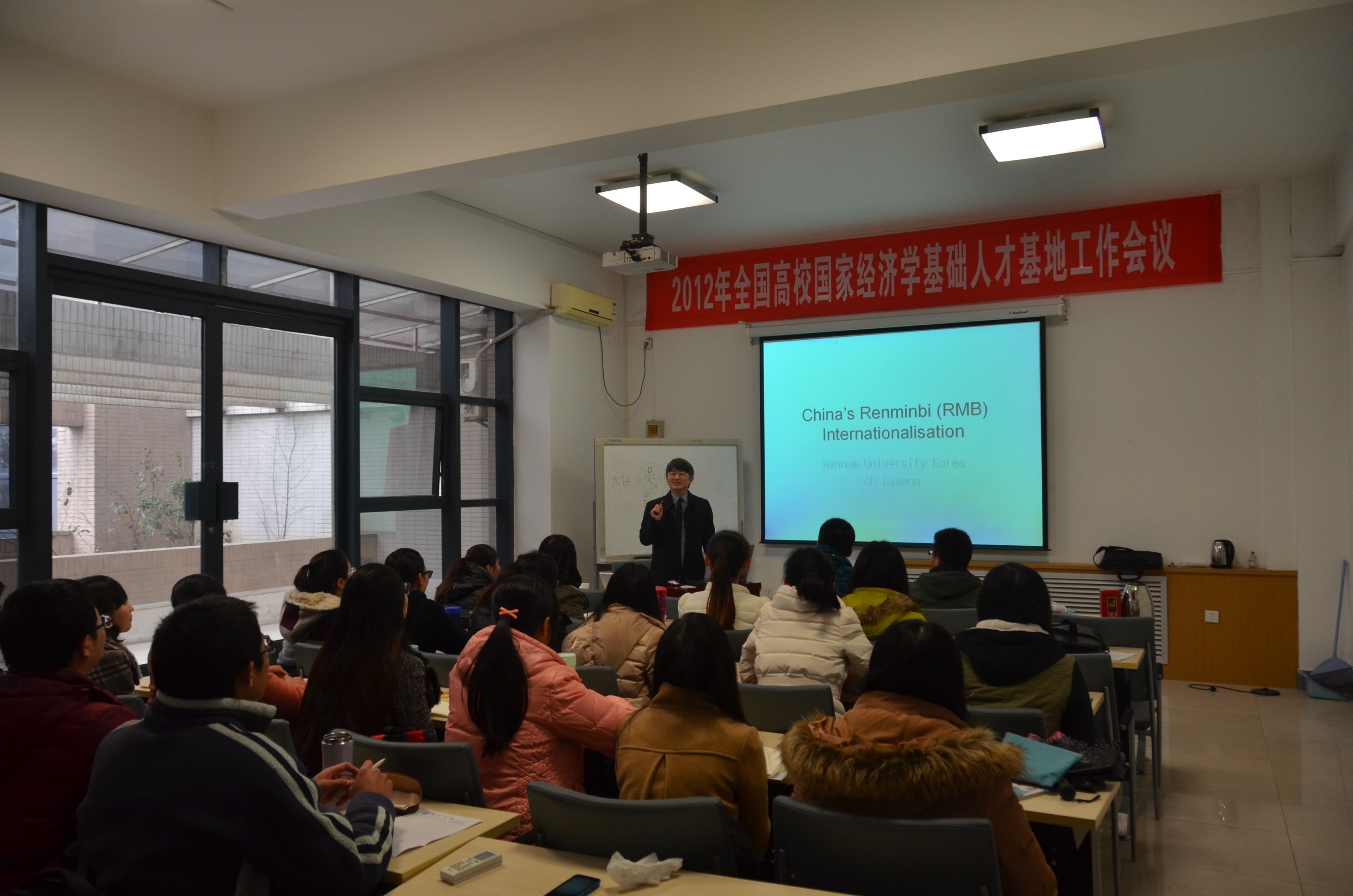 2014年2月28日,韩国韩南大学经商学院中国通商系教授吴垈原(Oh, Dae-Won)以《人民币国际化问题》为题,为新葡的京官网金融系研究生做了专题报告。吴教授在中国人民大学获得博士学位,是韩国研究中国人民币国际化问题的专家。
