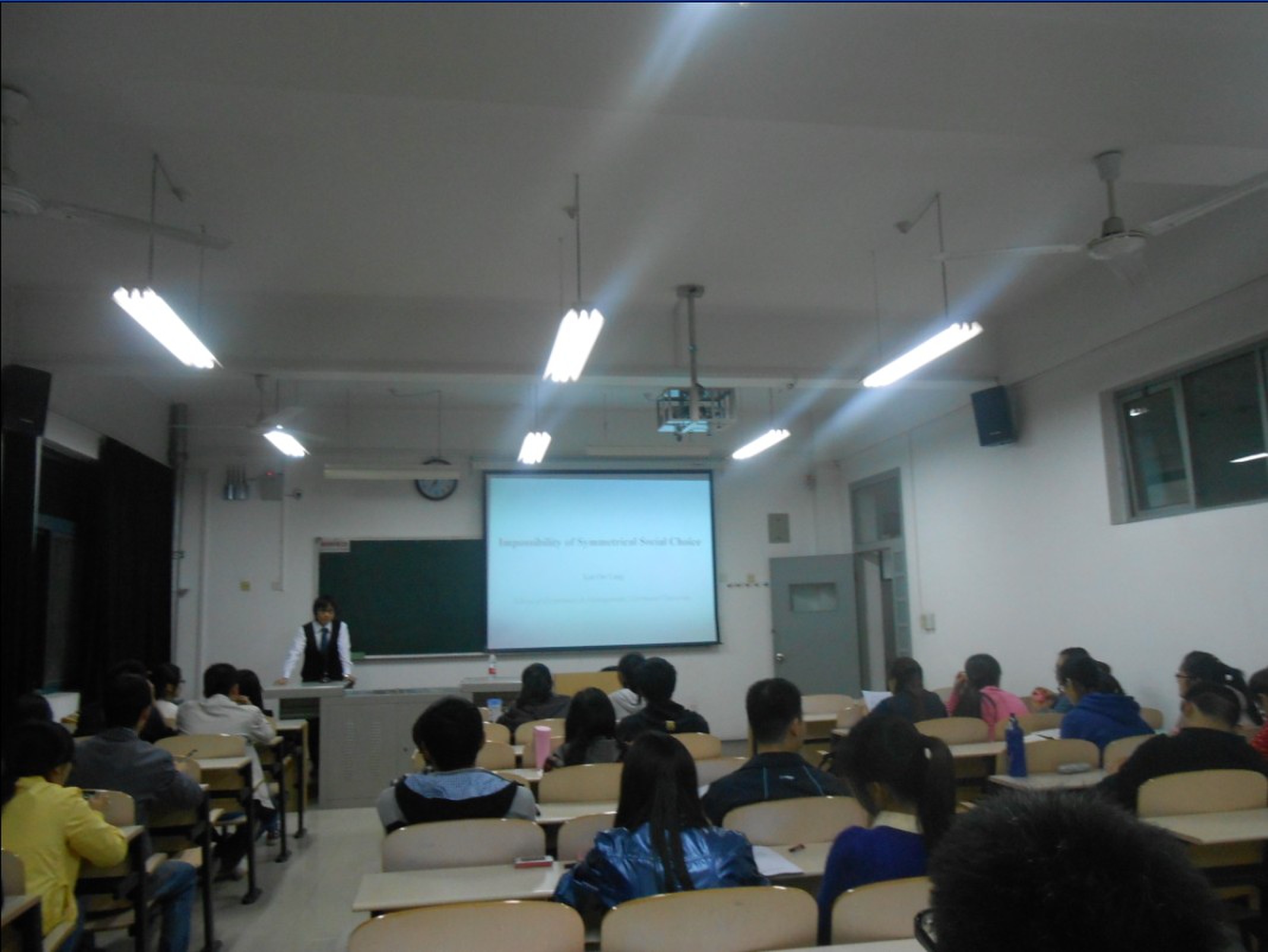 欧阳葵老师在讲座中论述了社会选择理论的三个基本条件:1.不相关选择独立性;2.集体理性;3.帕里托最优。进而对以下几个问题展开深入分析:为什么多数原则与集体理性是相冲突的;为什么民主选举不能保证最优秀的人胜出;阿罗不可能定理是否意味着民主是不可能的;等级制度是人类社会发展的必然结果吗;最完美的民主制度到底应该是什么。此外,欧阳葵老师就学生提出的问题作出了详细的解答,并且给同学们提出了宝贵的建议和意见。