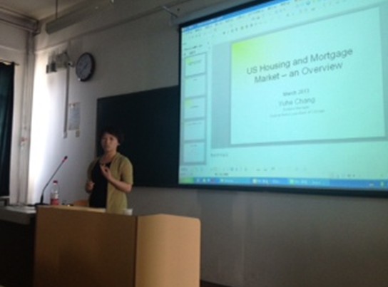 3月22日,美国伊利诺伊州芝加哥联邦家庭贷款银行(Federal Home Loan Bank of Chicago)投资组合经理及远期抵押产品经理常宇贺(Catherine Chang)女士为新葡的京官网金融专业作了题为《US Housing and Mortgage Market – an Overview》的报告。学院金融专业硕士和本科生70多人参加了活动,报告会由金融系刘慧侠副教授主持。