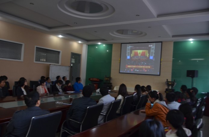 中国共产党第十八次全国代表大会于11月8日上午9时在北京人民大会堂隆重开幕。新葡的京官网党委组织院党政领导、全体行政干部、党员和学生代表在学院一层会议室集中收看了大会直播。